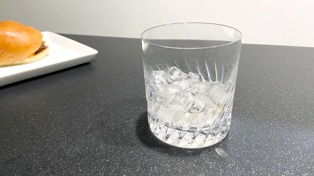 琉球泡盛と一緒に。自宅でゆっくりといただく。ハンバーガーと泡盛がこんなにも合うなんて…!デリバリーならこんな楽しみ方もできる。