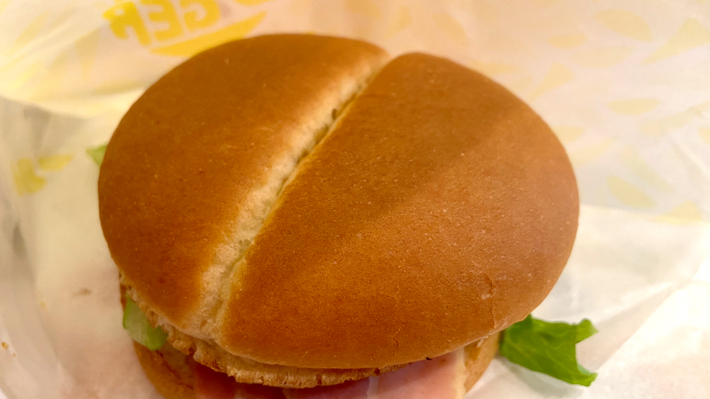 ロッテリアのマフィンはふんわりバンズ。表面は少しざらっとしています。